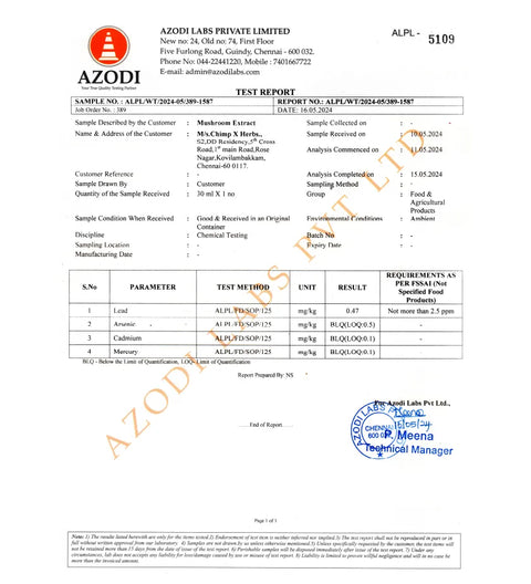 Our mushrooms are grown in clean, high-hygiene environments. After some serious TLC and strict quality control, we extract all the good stuff and carefully add it to the final product with precision in a lab. Mushroom magic, made just for you!